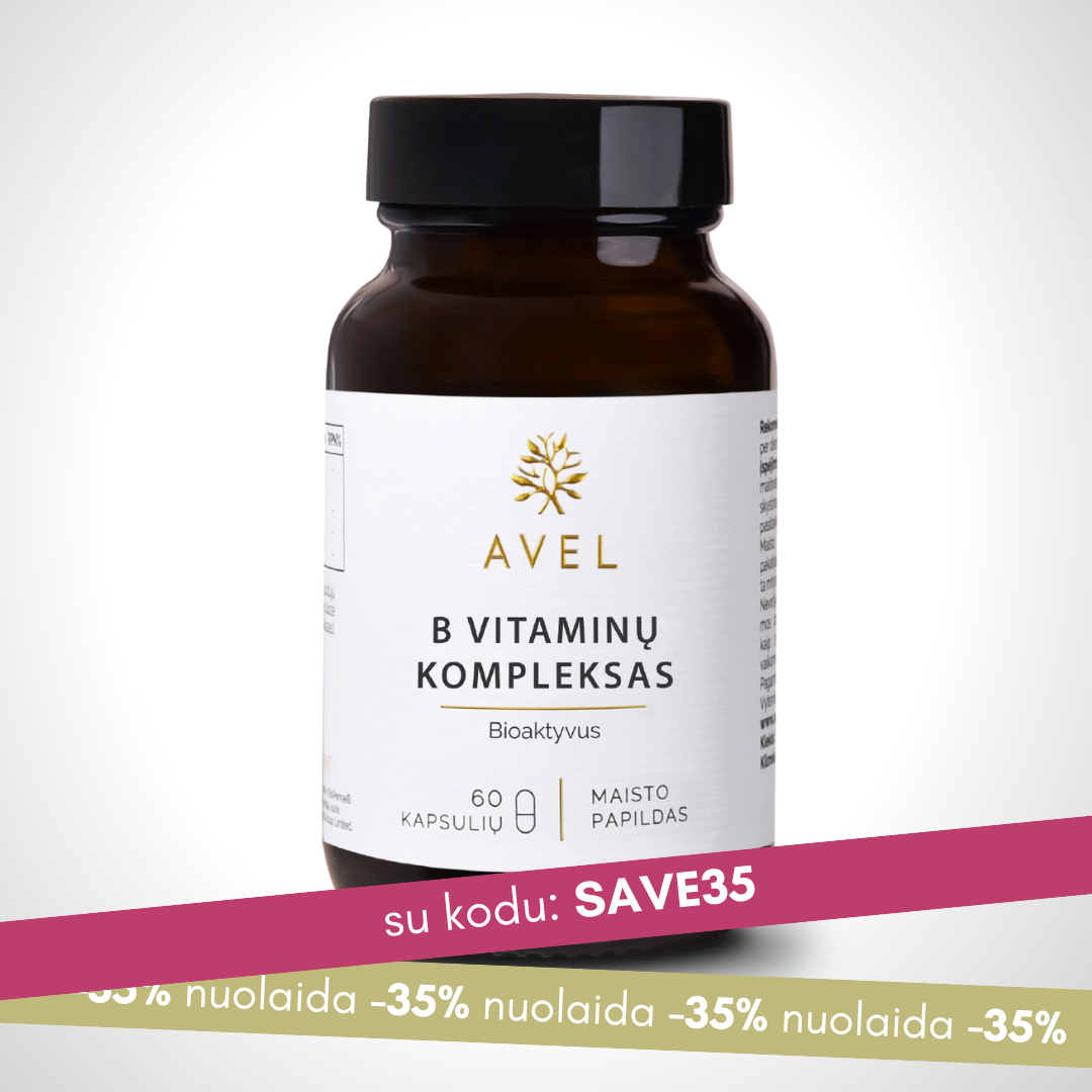 AVEL B grupės vitaminų kompleksas apjungia aštuonis B grupės vitaminus, tarp jų – bioaktyvią vitamino B12 formą (metilkobalaminą), piridoksal-5′-fosfatą (vitaminą B6) ir kalcio-L-metilfoliatą (vitaminą B9). Šios medžiagos yra vitaminų formos, kurias organizmas gali tiesiogiai panaudoti.