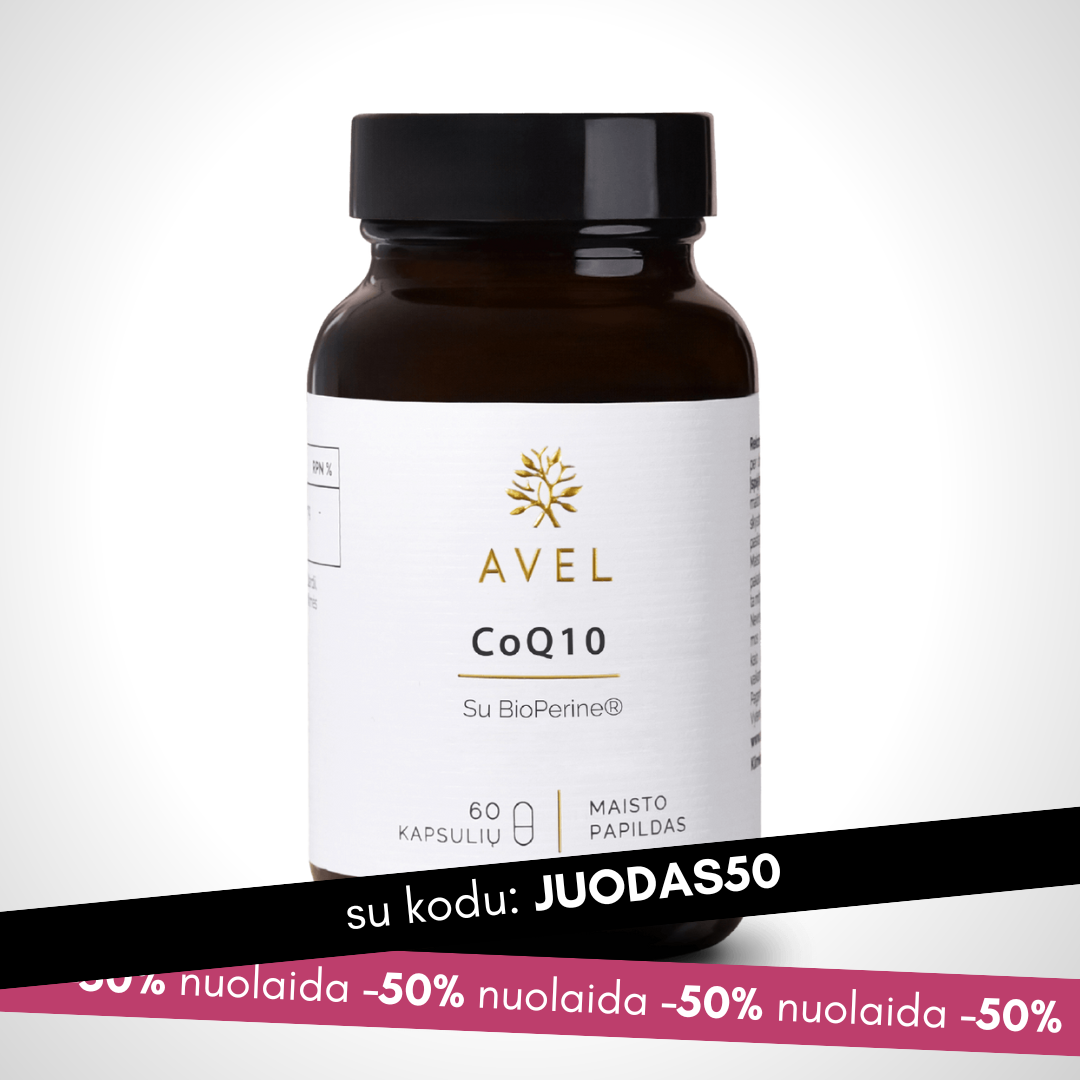 AVEL kofermentas Q10 su Bioperine® yra aukštos kokybės produktas širdies sveikatai ir energijos lygiui palaikyti. Kofermentas Q10 (CoQ10) yra svarbus energijos gamybai ląstelėse ir veikia kaip galingas antioksidantas, o Bioperine® užtikrina geriausią CoQ10 įsisavinimą.