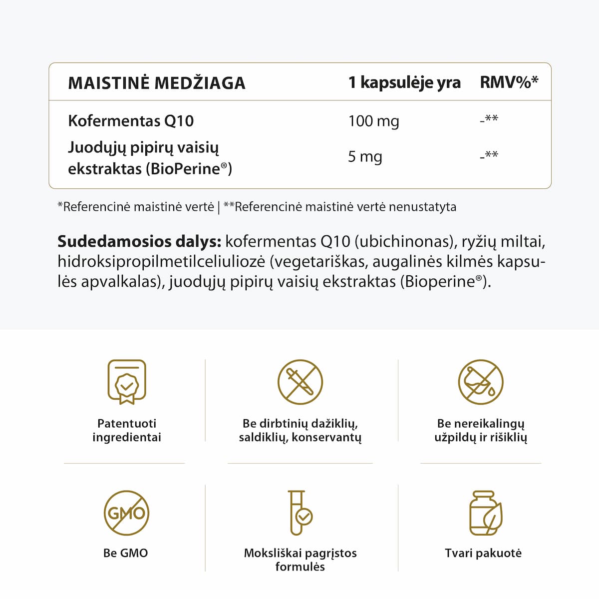 - Vyresniems nei 50 metų: taip pat 100–200 mg per dieną, nes su amžiumi organizmas gamina mažiau CoQ10.