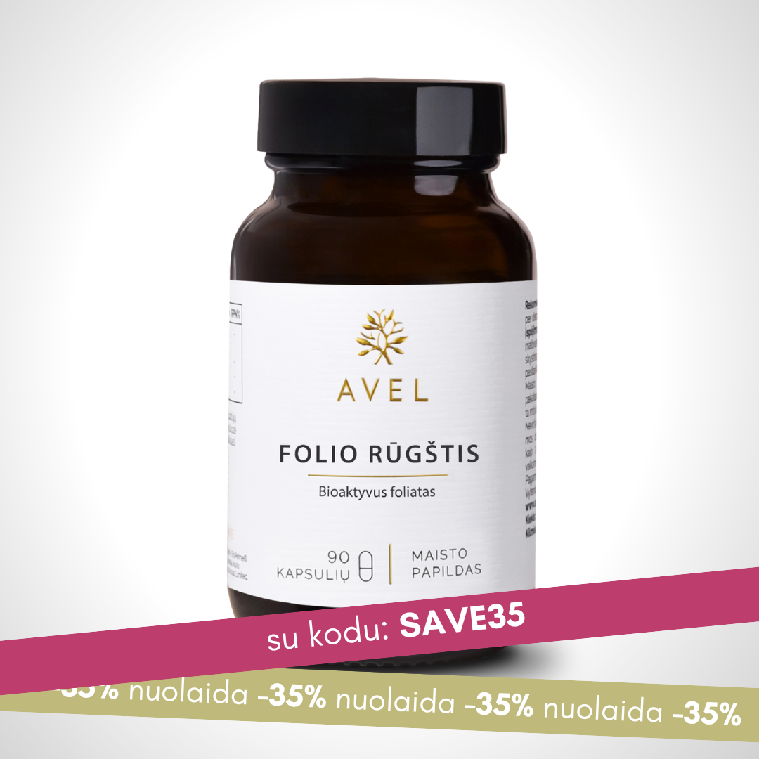 AVEL folio rūgštis pateikiama kaip kalcio-L-metilfoliatas – tai natūrali, biologiškai aktyvi vitamino B9 forma, kuri yra lengvai įsisavinama ir iškart panaudojama organizme. Skirtingai nuo įprastos sintetinės folio rūgšties, kurią organizmas dar turi konvertuoti į aktyvią formą, metilfoliatas veikia iškart, todėl jis yra ypač efektyvus net tiems, kurių organizmas sunkiai įsisavina sintetinę folio rūgštį.