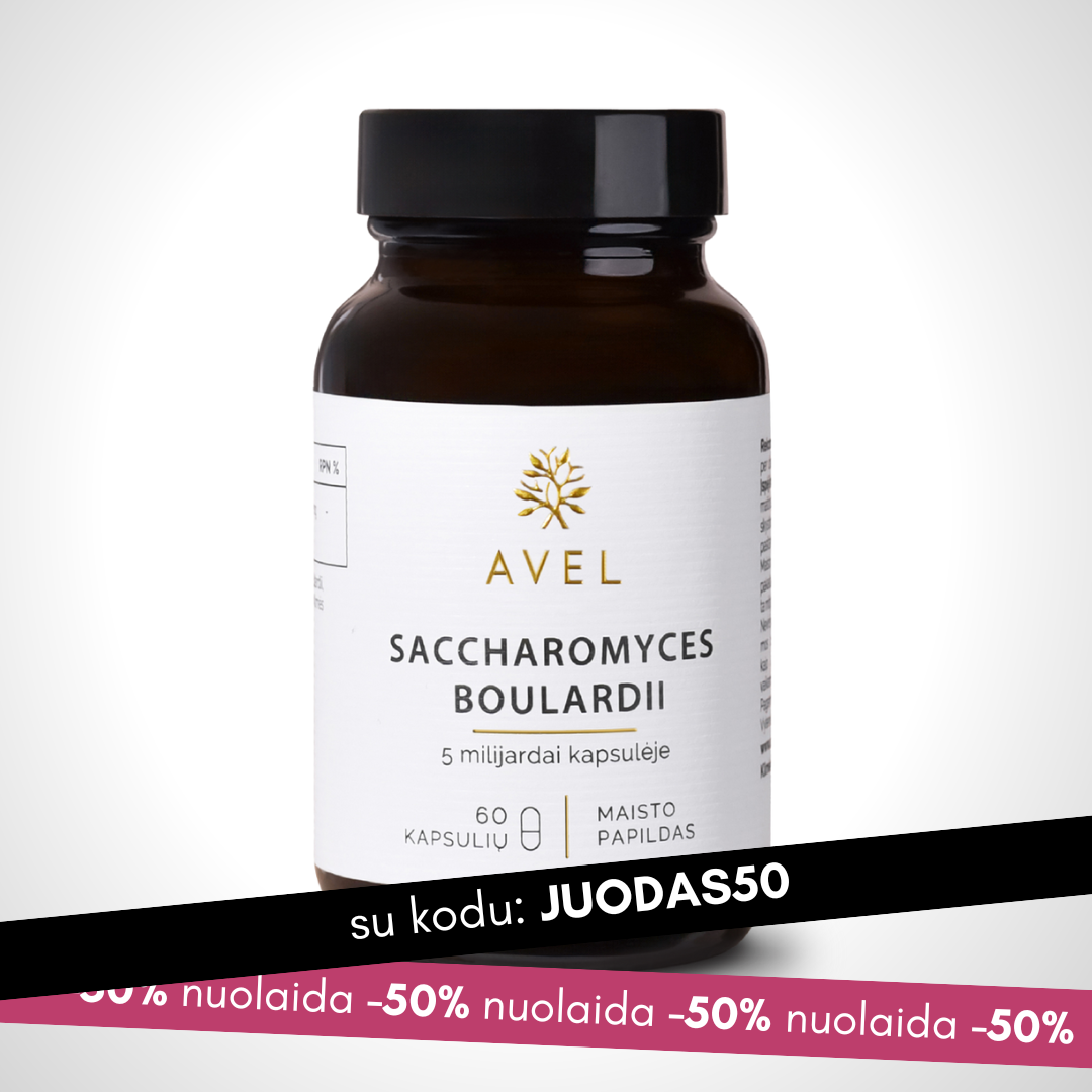 Saccharomyces boulardii 5 milijardai KSV (kolonijas sudarančių vienetų) vienoje kapsulėje. Bioaktyvi mielių atmaina, atspari virškinimo rūgštims ir įprastiems antibiotikams.
